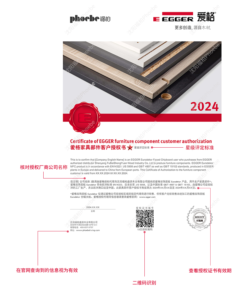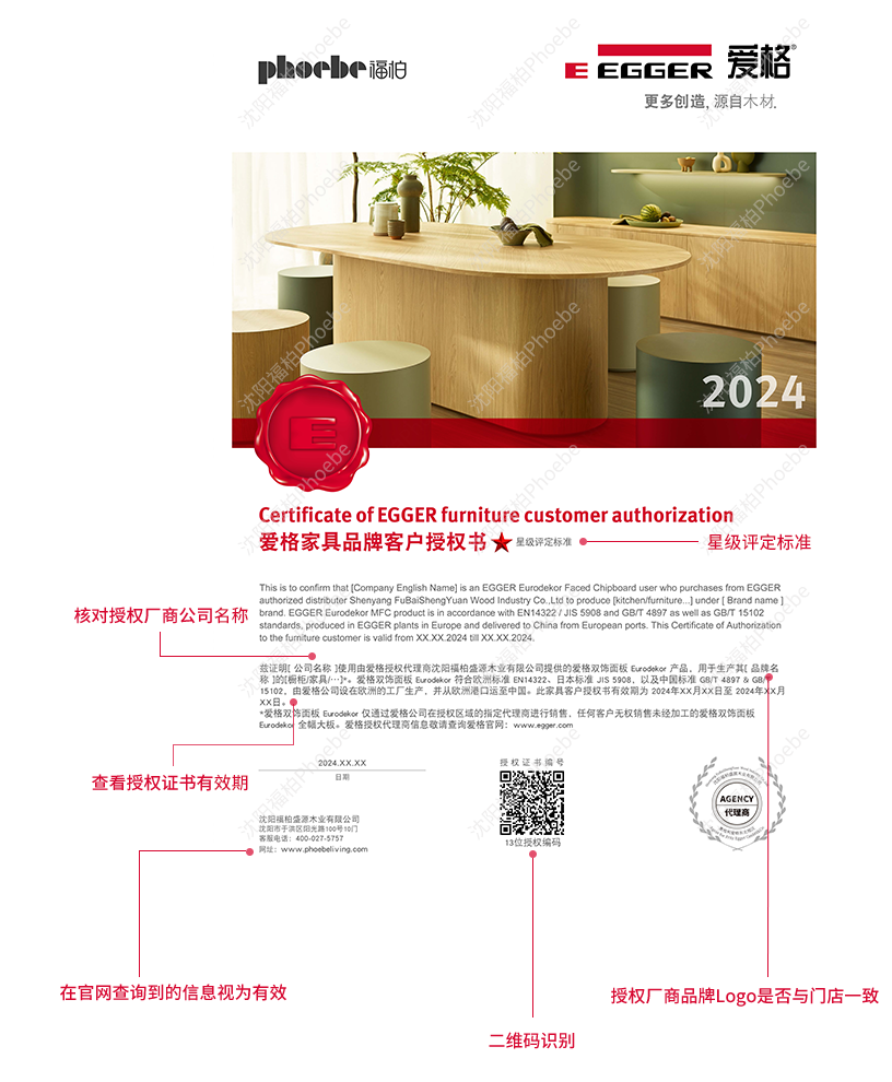 為了更好地保護(hù)消費者與正規(guī)授權(quán)客戶權(quán)益,幫助消費者購買到使用正品愛格板材制成的家具類產(chǎn)品,我們已為授權(quán)商提供正本的授權(quán)證書,